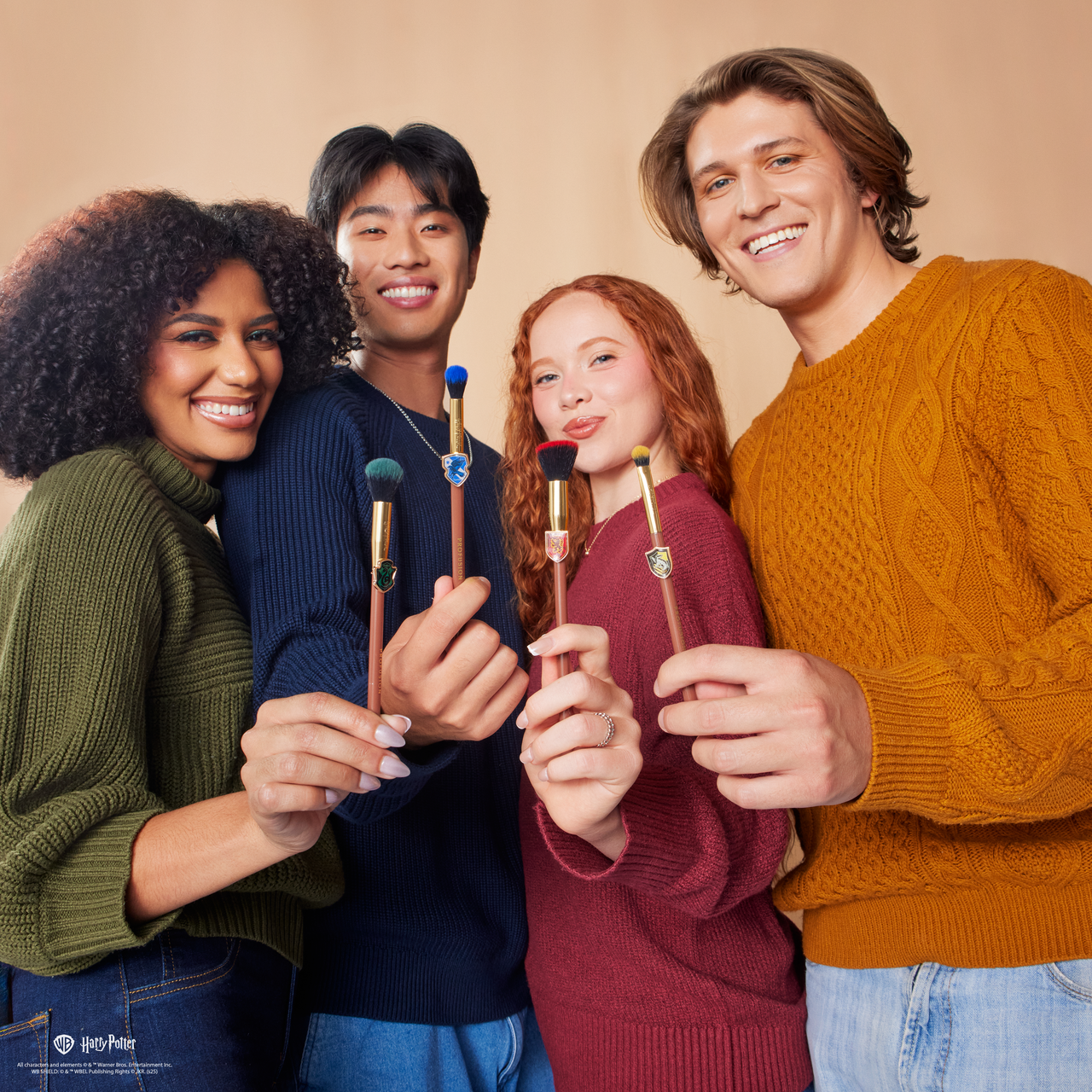 Create spellbinding makeup looks with the Harry Potter™ House Champions Face & Brush Set! This 4-piece set includes a foundation brush, powder brush, blending brush, and crease brush, all crafted with synthetic bristles for smooth, flawless application on both cream and powder formulas. Each brush is thoughtfully designed with lightweight handles for precise control, while the curated design features a limited-edition charm for each Hogwarts™ house, adding a festive, collectible touch. Easy to clean and store, this set is perfect for wizards and witches of every house who want to bring a little holiday magic to their beauty routine.
