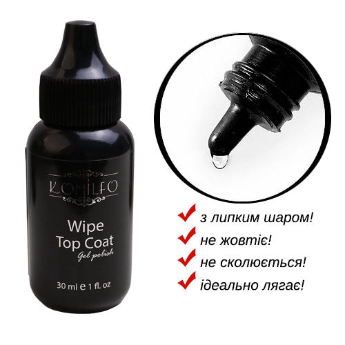 KOMILFO WIPE TOP - TOP FOR GEL POLISH WITH A STICKY LAYER, 30 ML (BARREL WITH SPOUT) Article : 143001