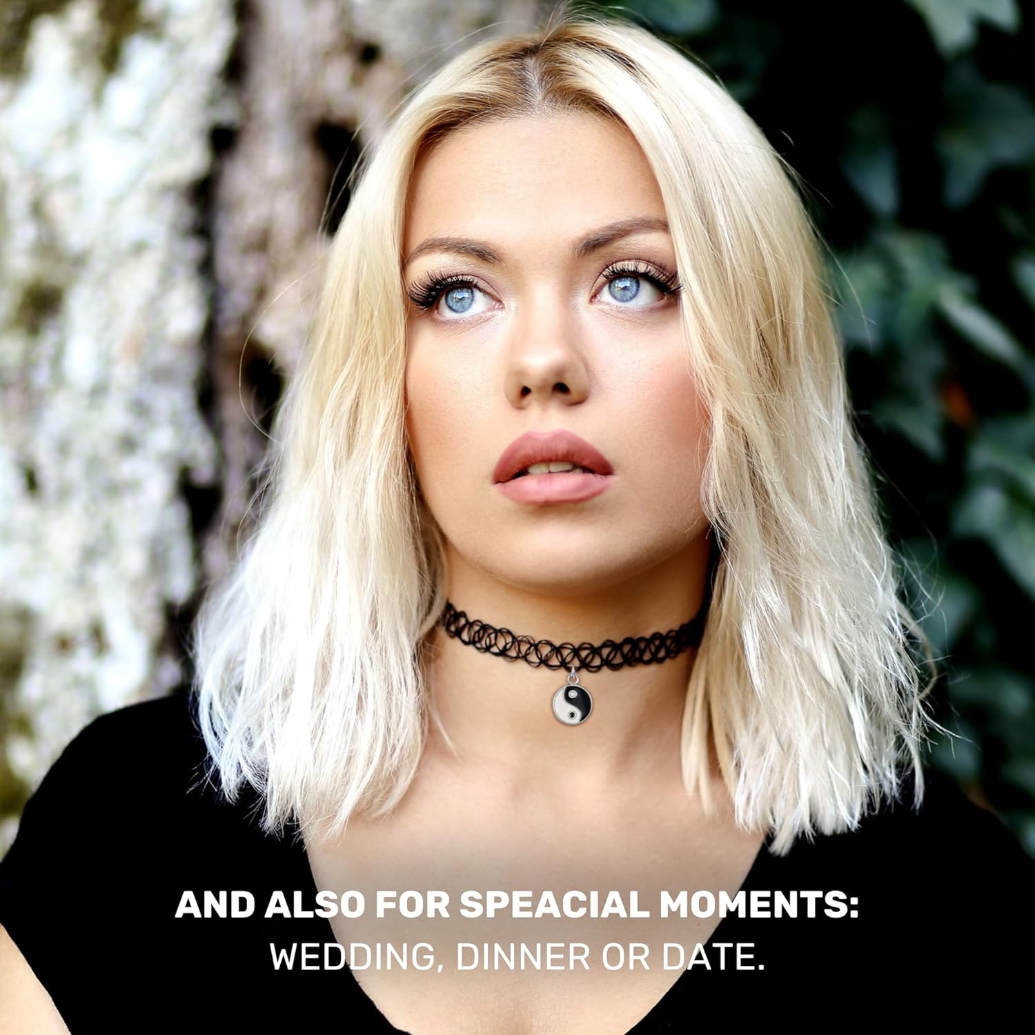 Elastic Choker Ying Yang Charm Necklace