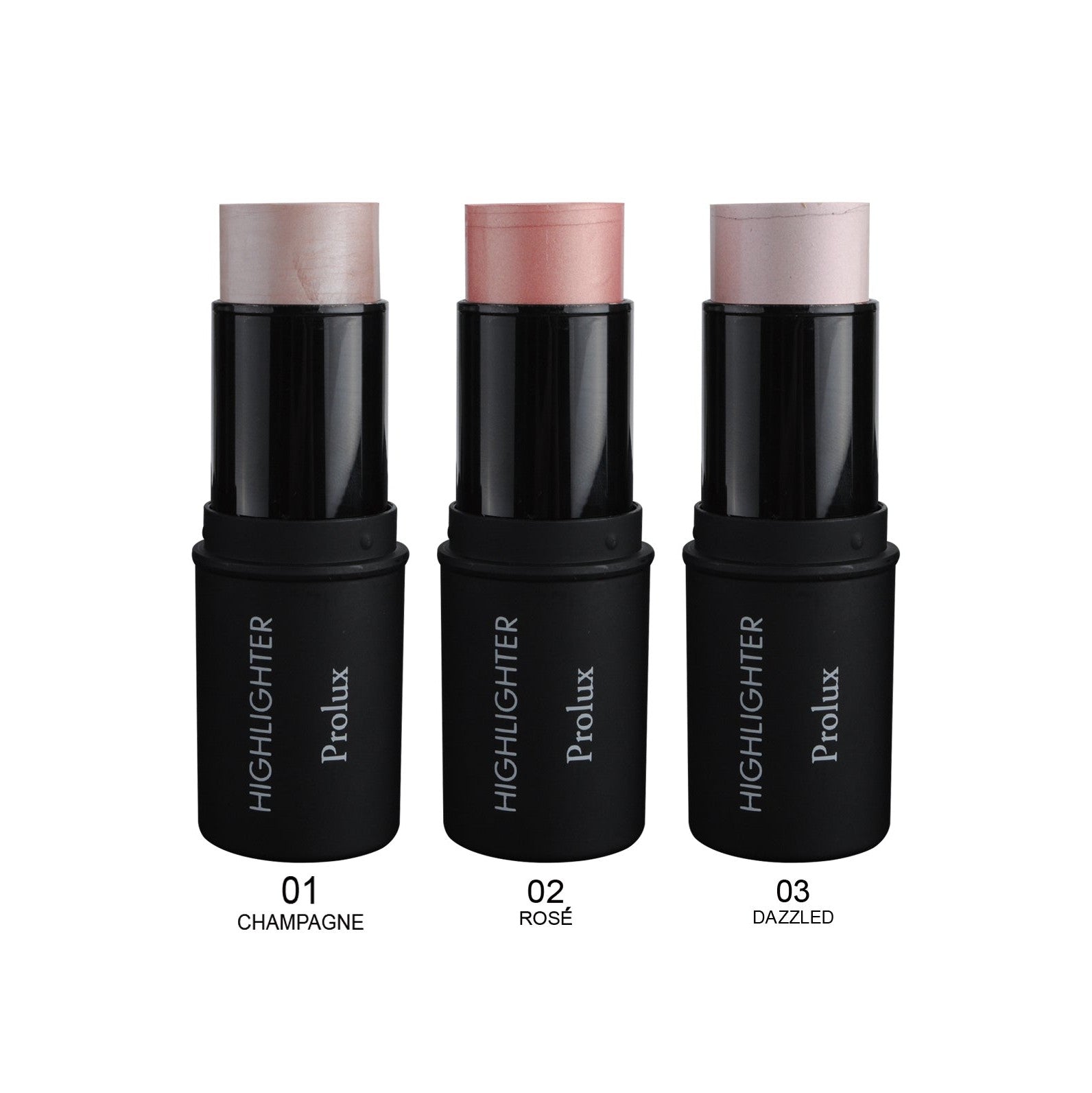 Prolux Highlighter Stick is the best highlighter stick featuring three sparkly shades. This highlight stick delivers a lightweight blendable and long lasting formula that creates a natural radiant glow. Perfect as a highlighter makeup stick for easy application and travel friendly use anytime, anywhere.