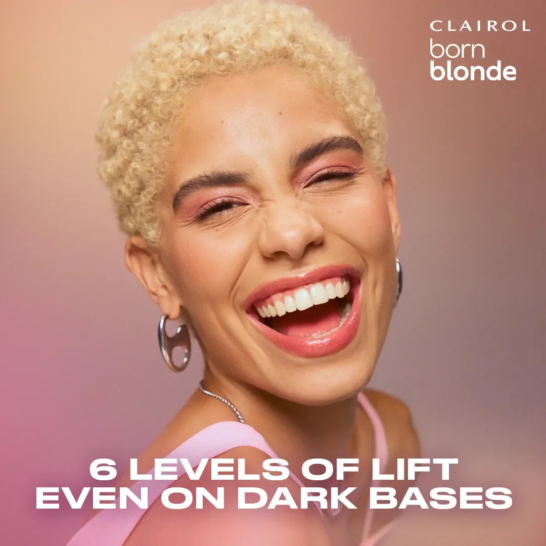 Luce el rubio intenso y brillante que siempre has deseado con el Kit de Rubio Definitivo Born Blonde de CLAIROL . Este potente sistema de aclarado aclara hasta 6 tonos, ofreciendo resultados rubios espectaculares y de aspecto natural, incluso en cabello oscuro. Su fórmula avanzada te da control total sobre el tono de tu cabello, ideal para todos los tonos. Además, cada kit incluye una mascarilla antirotura que ayuda a proteger y suavizar el cabello, para que puedas aclararlo con confianza y cuidado.