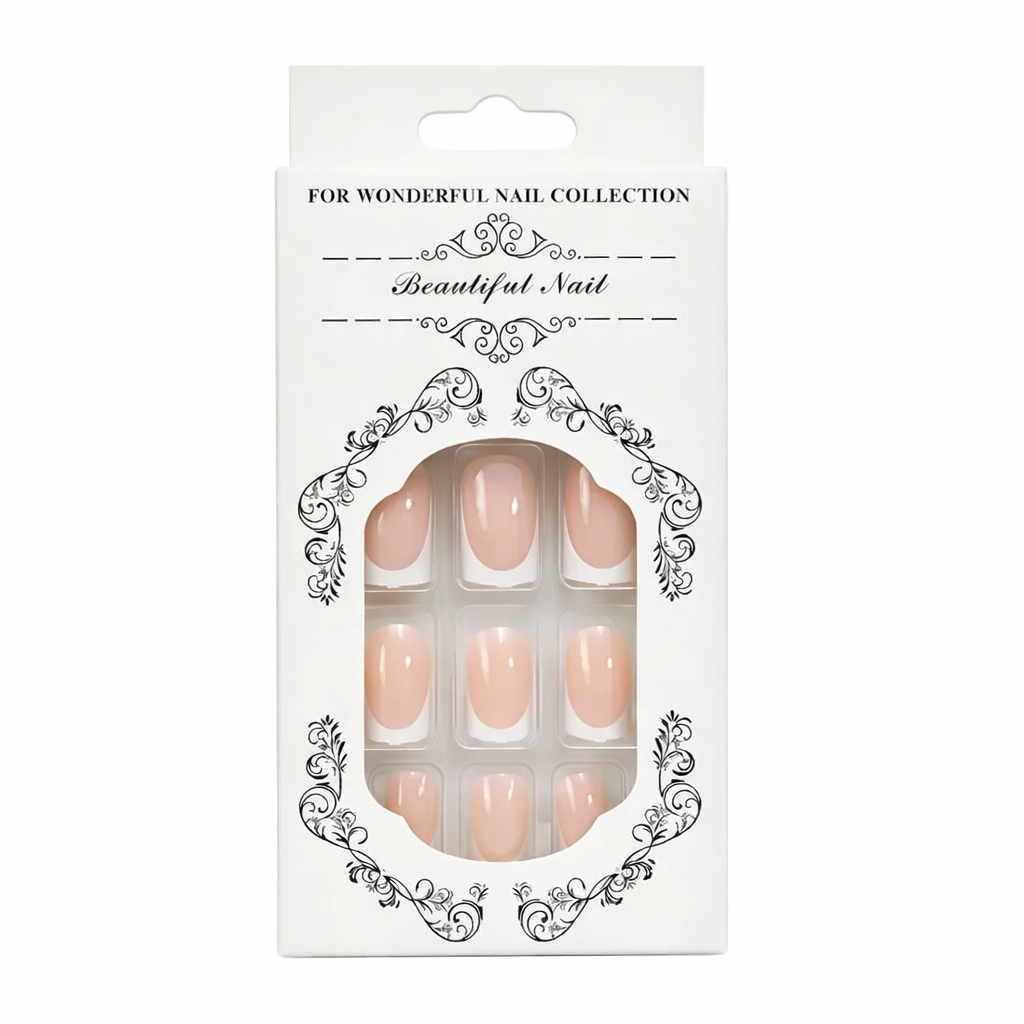 Salon-Style French Tip Press-On Nails - Square 019