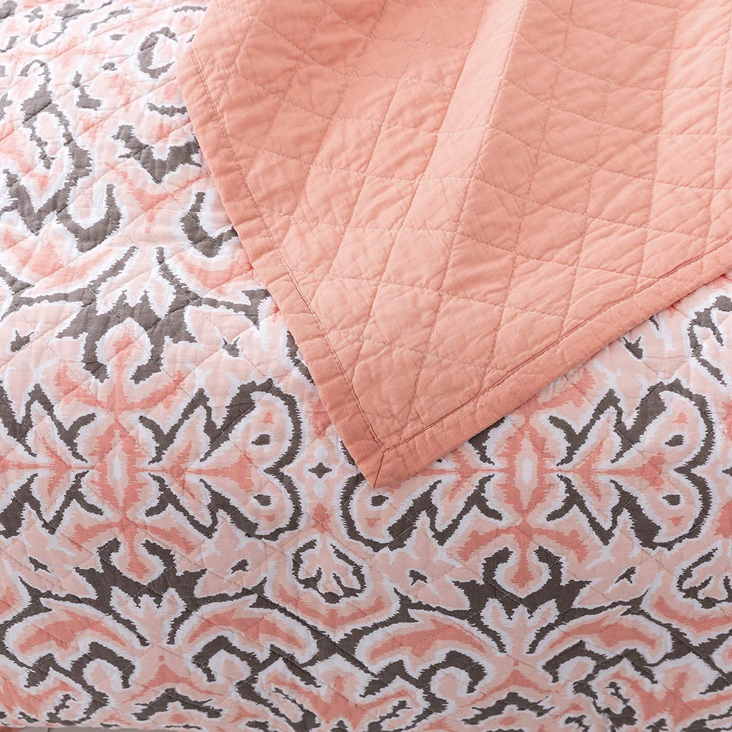This beautiful blend of floral reversible design bedspread is a lavish pick of the season. Contemporary bedding set with 100% cotton plush with a reversible bedspread feature. The attractive colors, detailed stitched pattern, and piped edges gives this bedspread an exquisite look and fee. It is made with cotton and brushed microfiber and cotton filling to make the bedding soft, right weight and breathable to be used all year round. The fabric is supremely soft and comfortable to give you the most restorative sleep that you deserve.